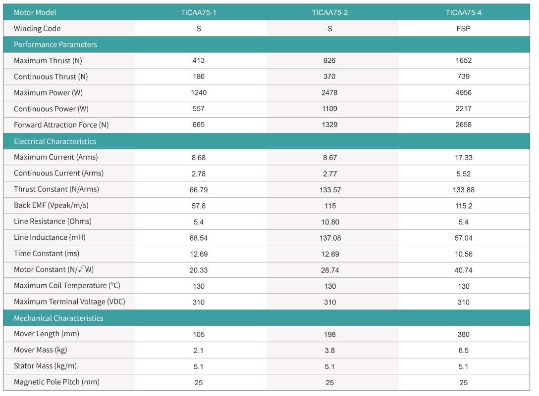Product Lineup: Linear Motors TICAA75 series
